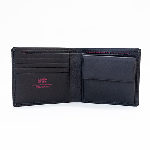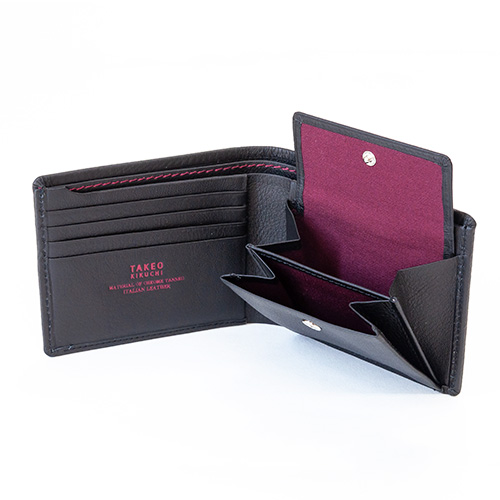 一見シンプルなデザインにさりげないカラーステッチがワンポイントなタケオキクチらしいデザイン性のあるお財布です。