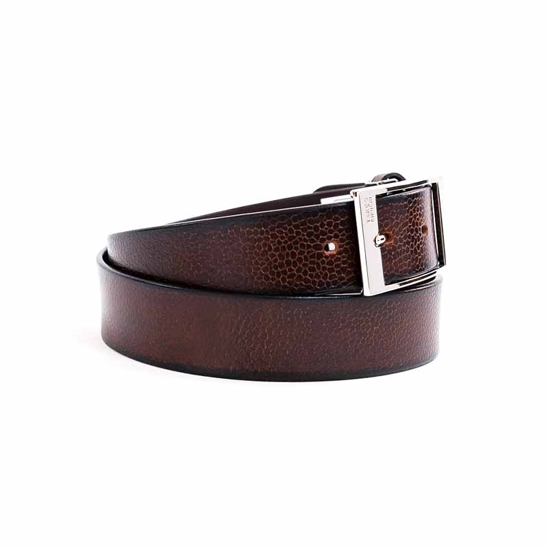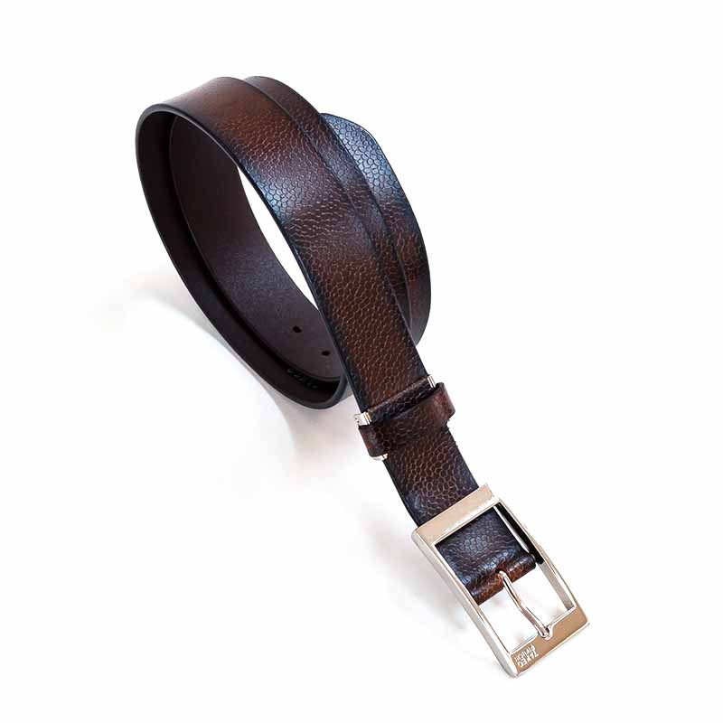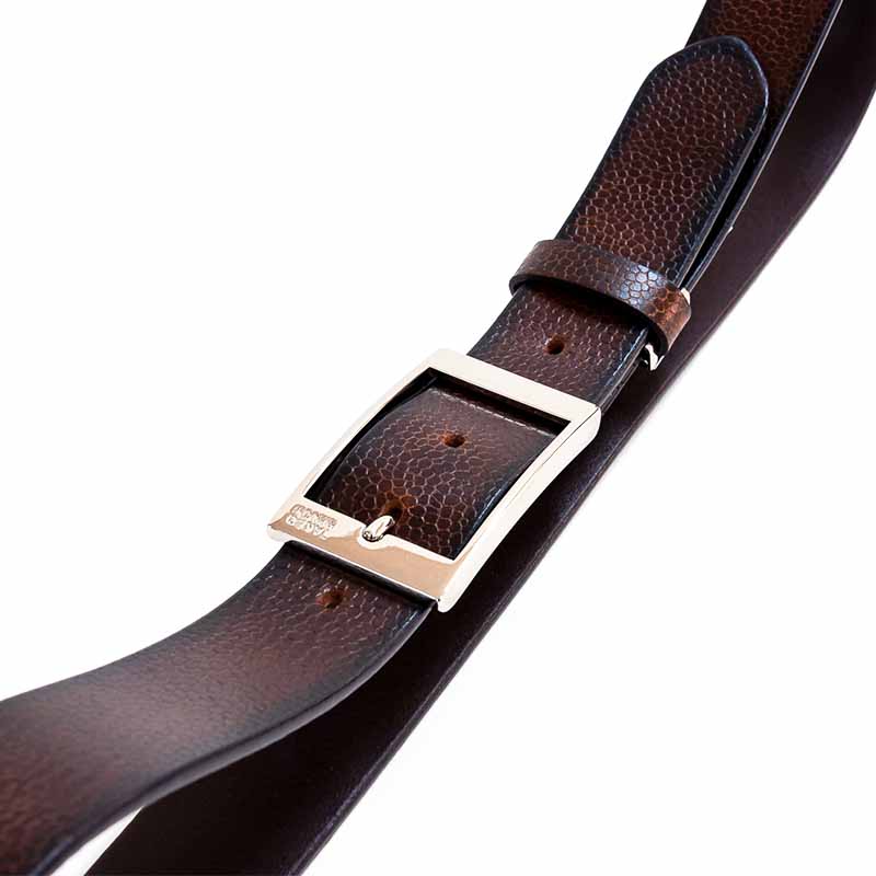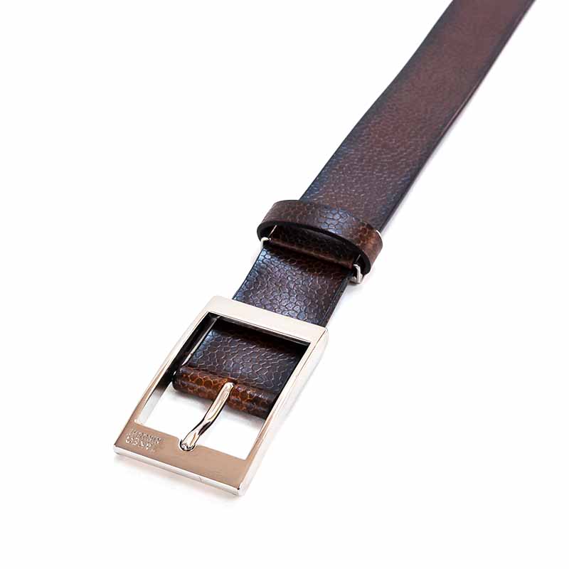 スクエアな美錠が印象的な 一枚革のカジュアルベルト