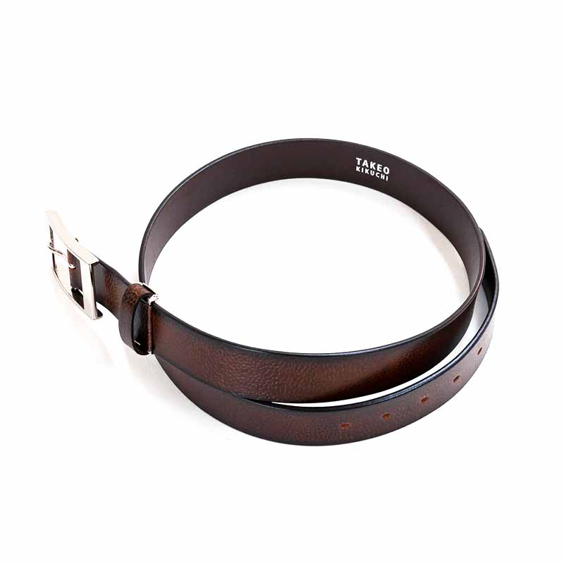 【タケオキクチ】 カジュアルベルト インド製一枚革 サイズ調整可 日本製