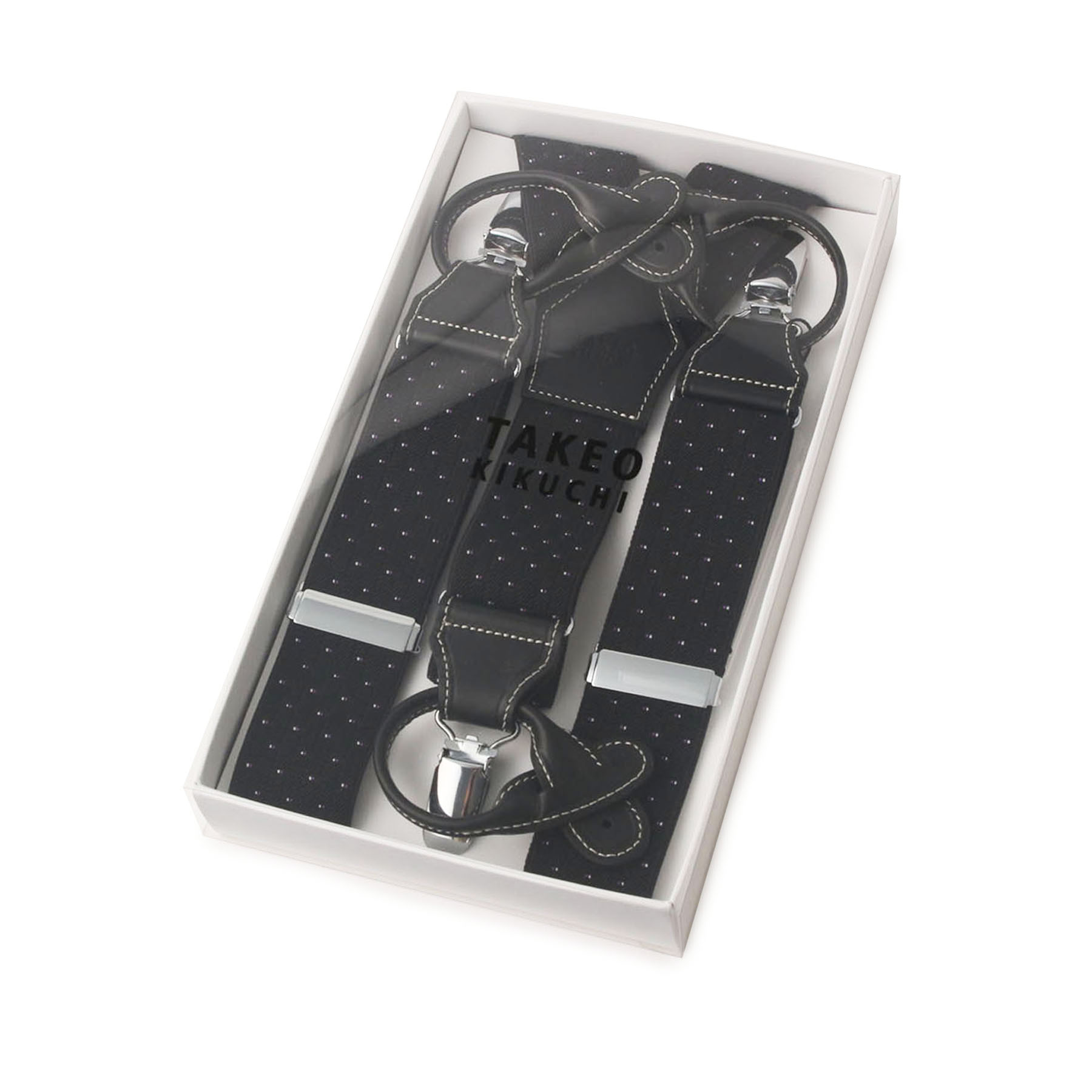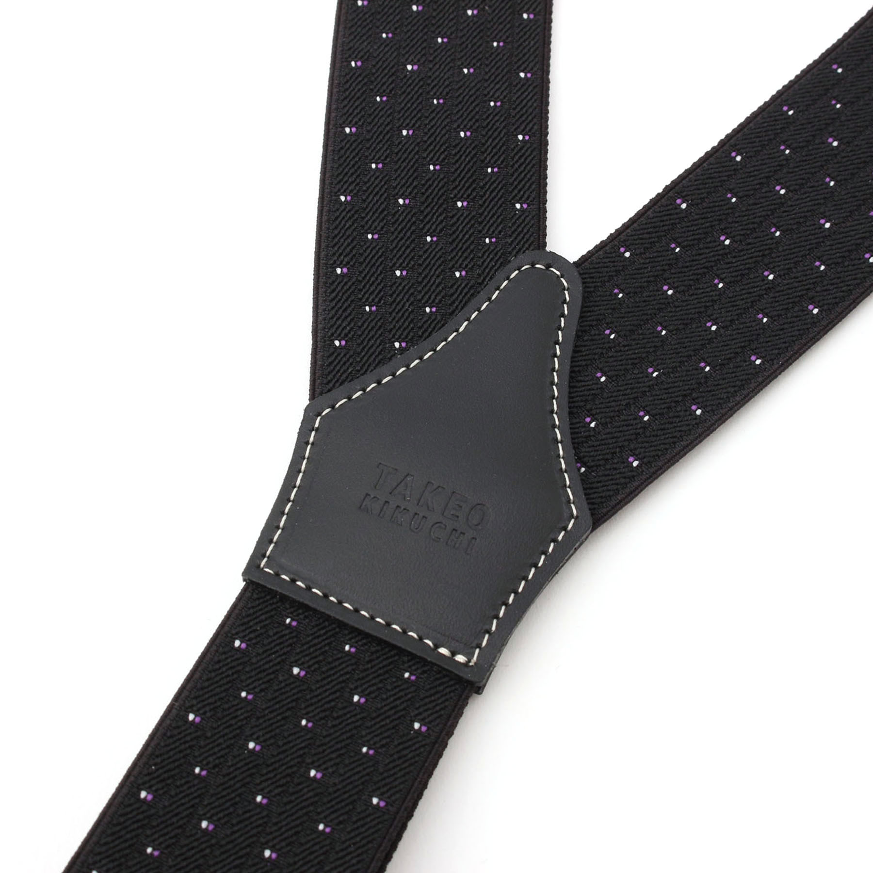 ドット柄のデザインでコーディネートのアクセントにもなります。タケオキクチサスペンダーの中でも人気のサスペンダーです。