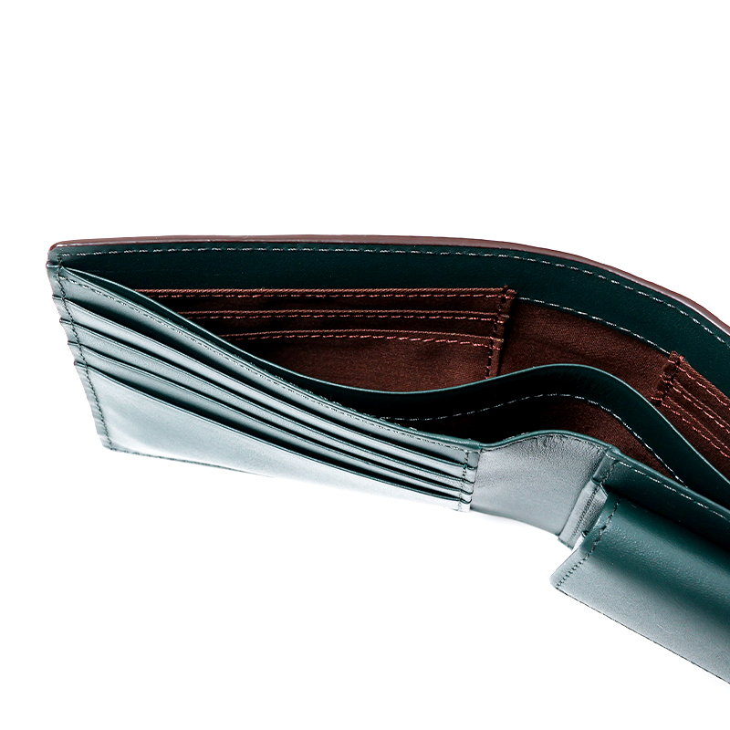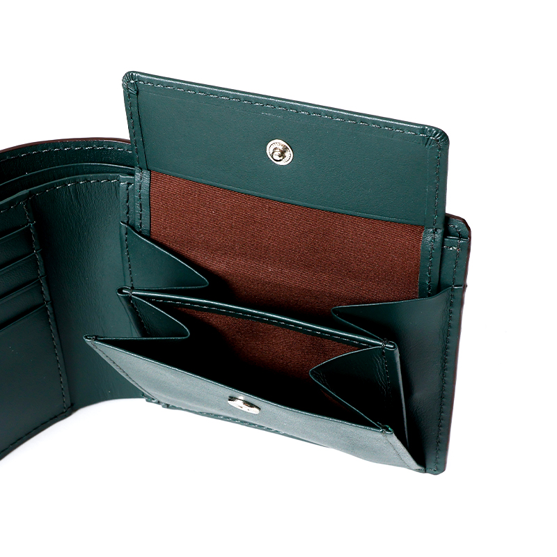 立体感のあるワイルドなデザインの小銭入れ付二つ折り財布