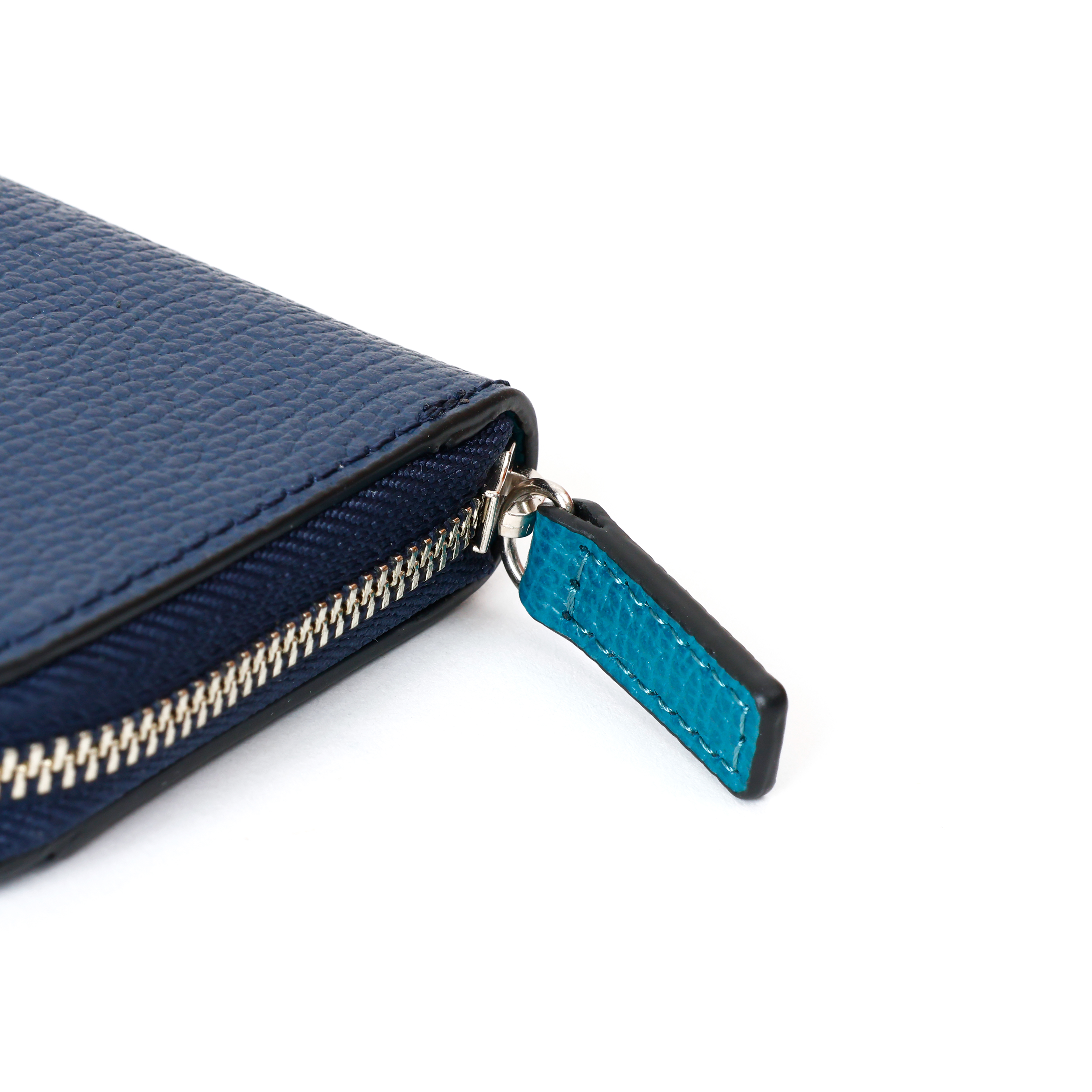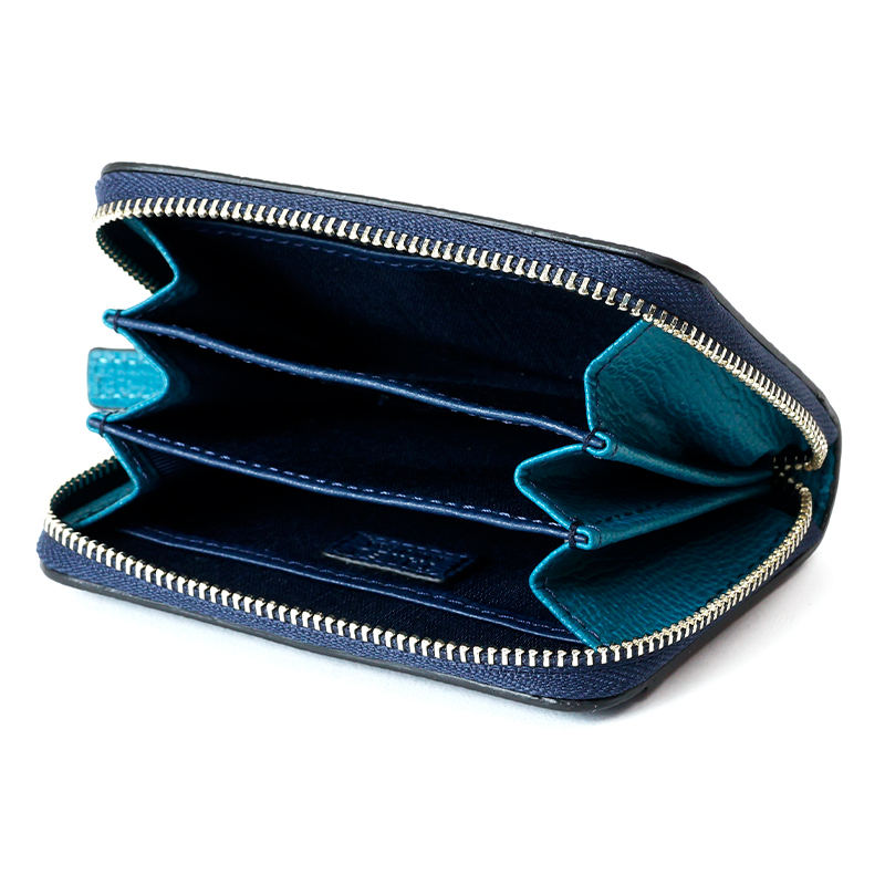 口が大きく開くラウンドファスナーを採用しており、小銭は3室に分かれています。