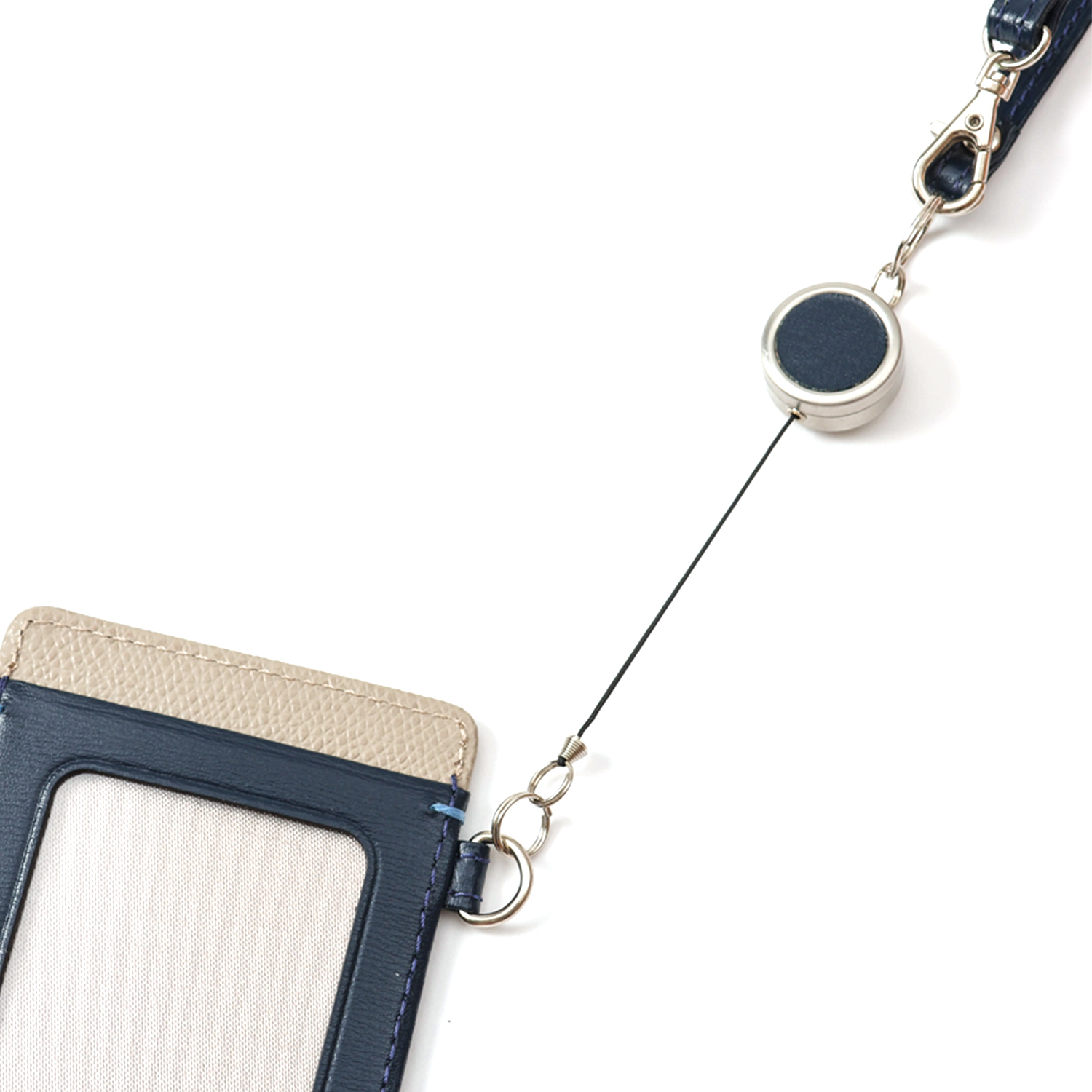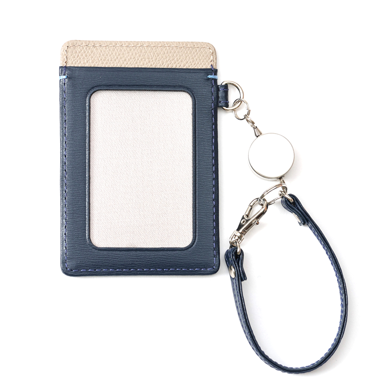 細やかなシボと光沢感のあるリール付パスケース