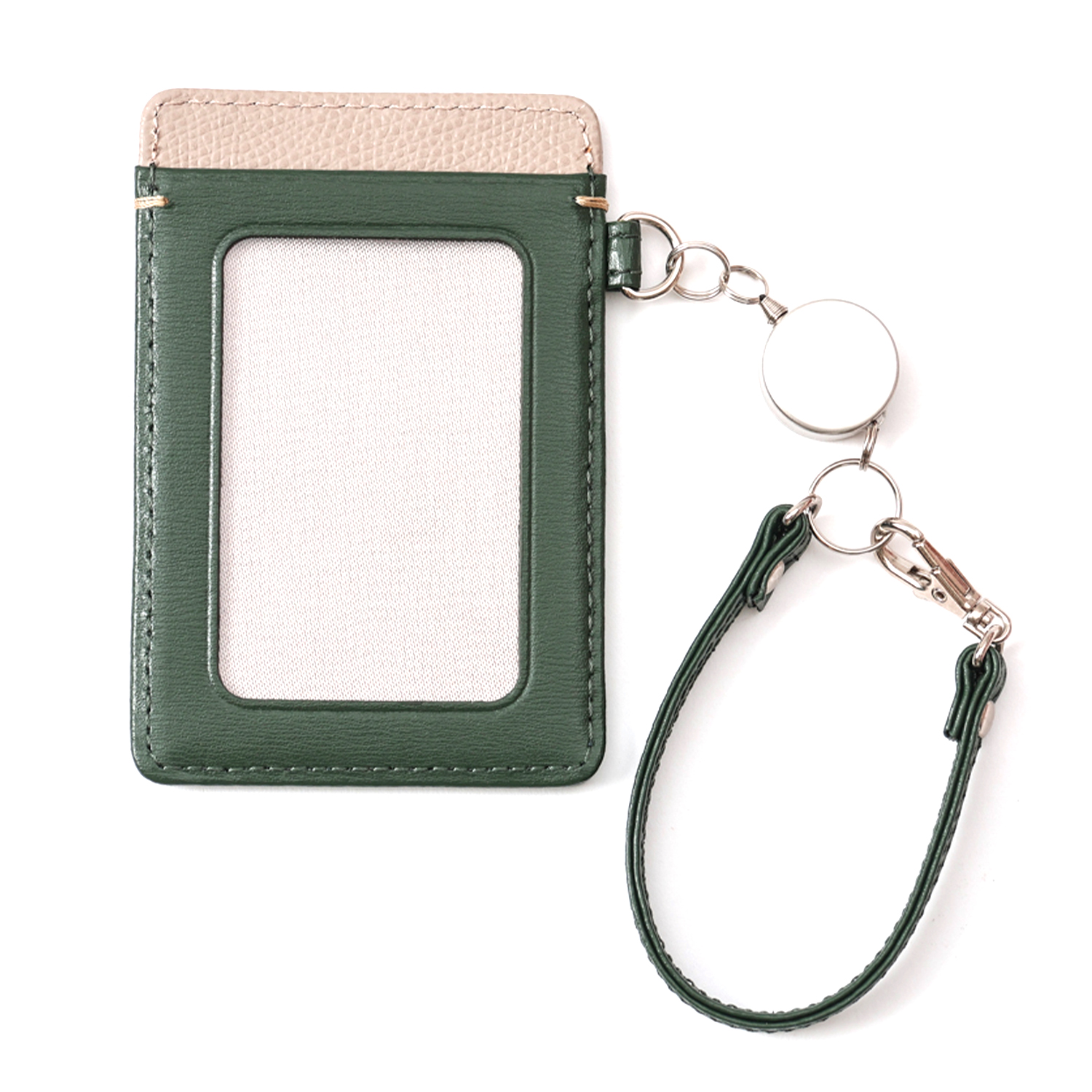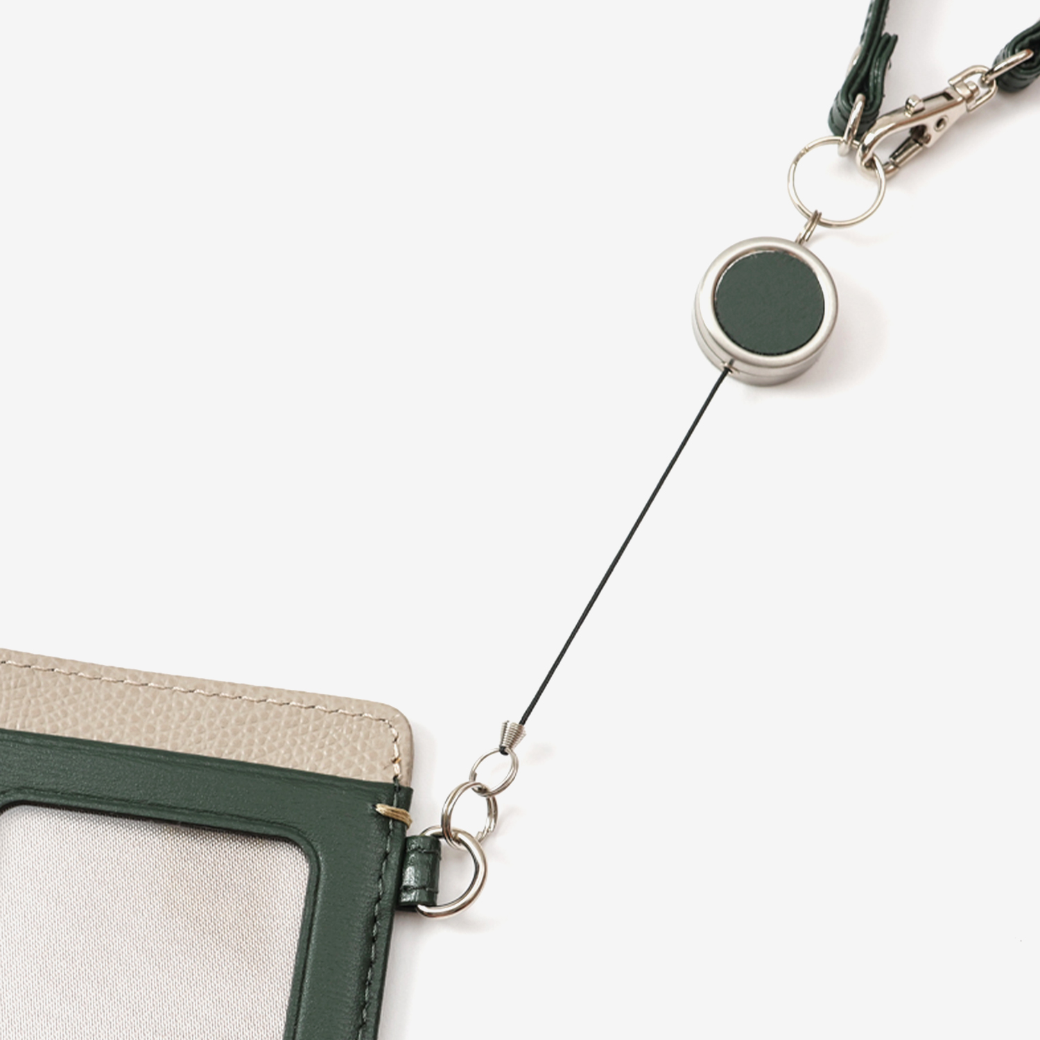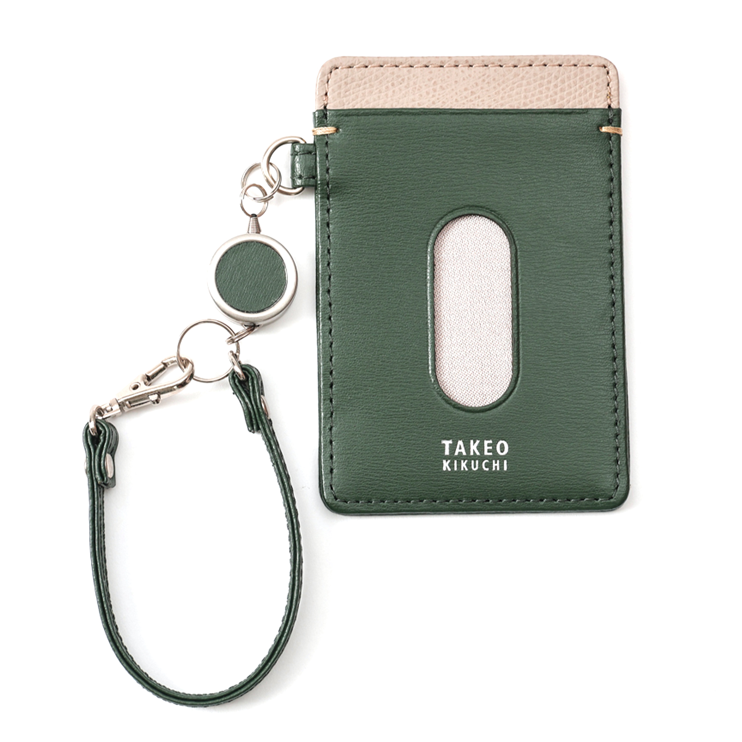 2面タイプのパスケースに伸縮リールが付属した使い勝手の良いアイテムです。