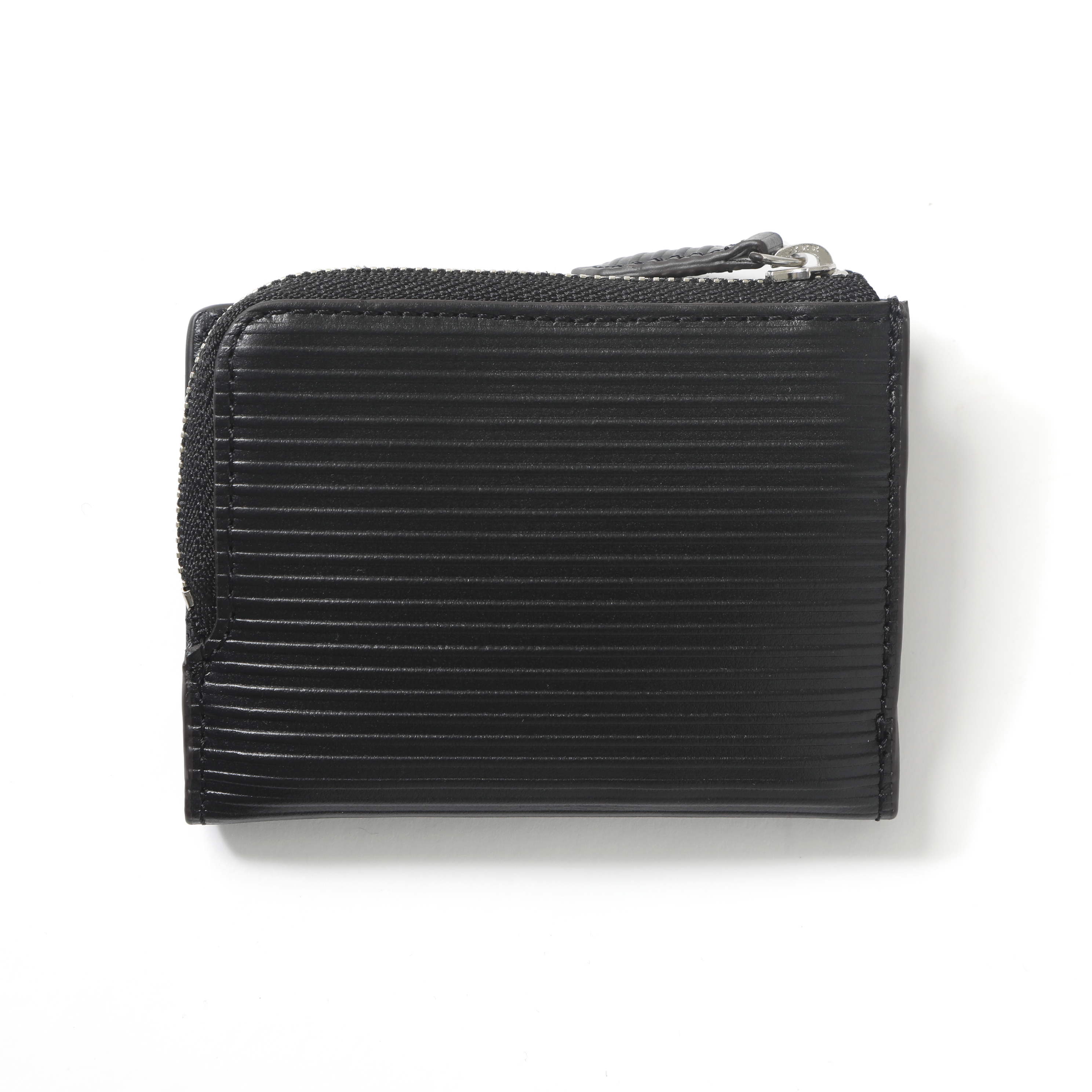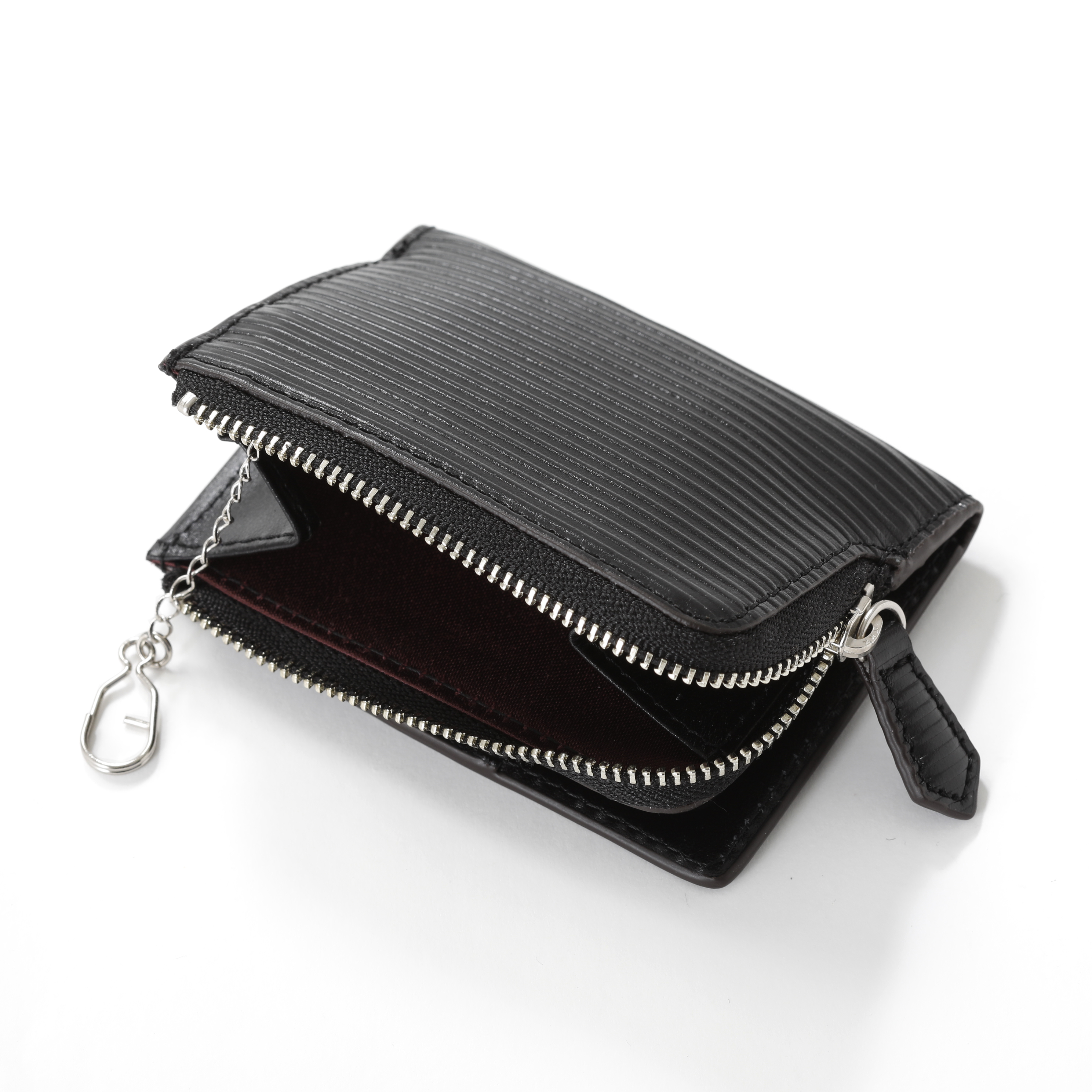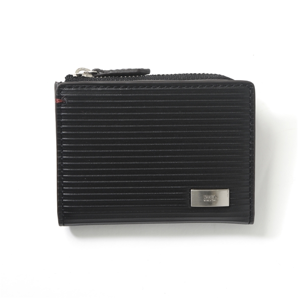 イタリア製のストライプ型押しとブランドロゴパーツがポイント