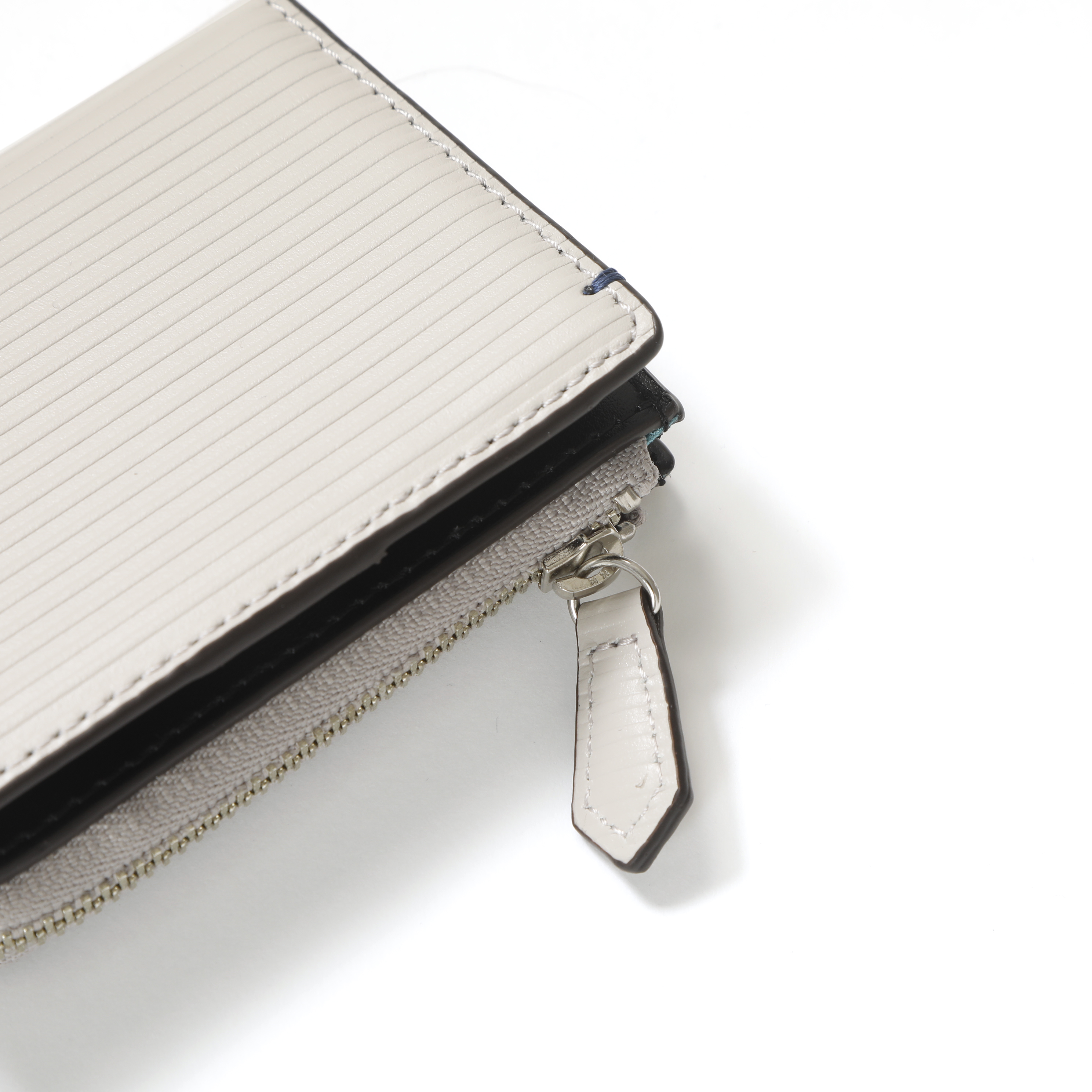 表にイタリア製のストライプ型押しレザーを使用し、内側にはイタリア製のスムースレザーを組み合わせています。