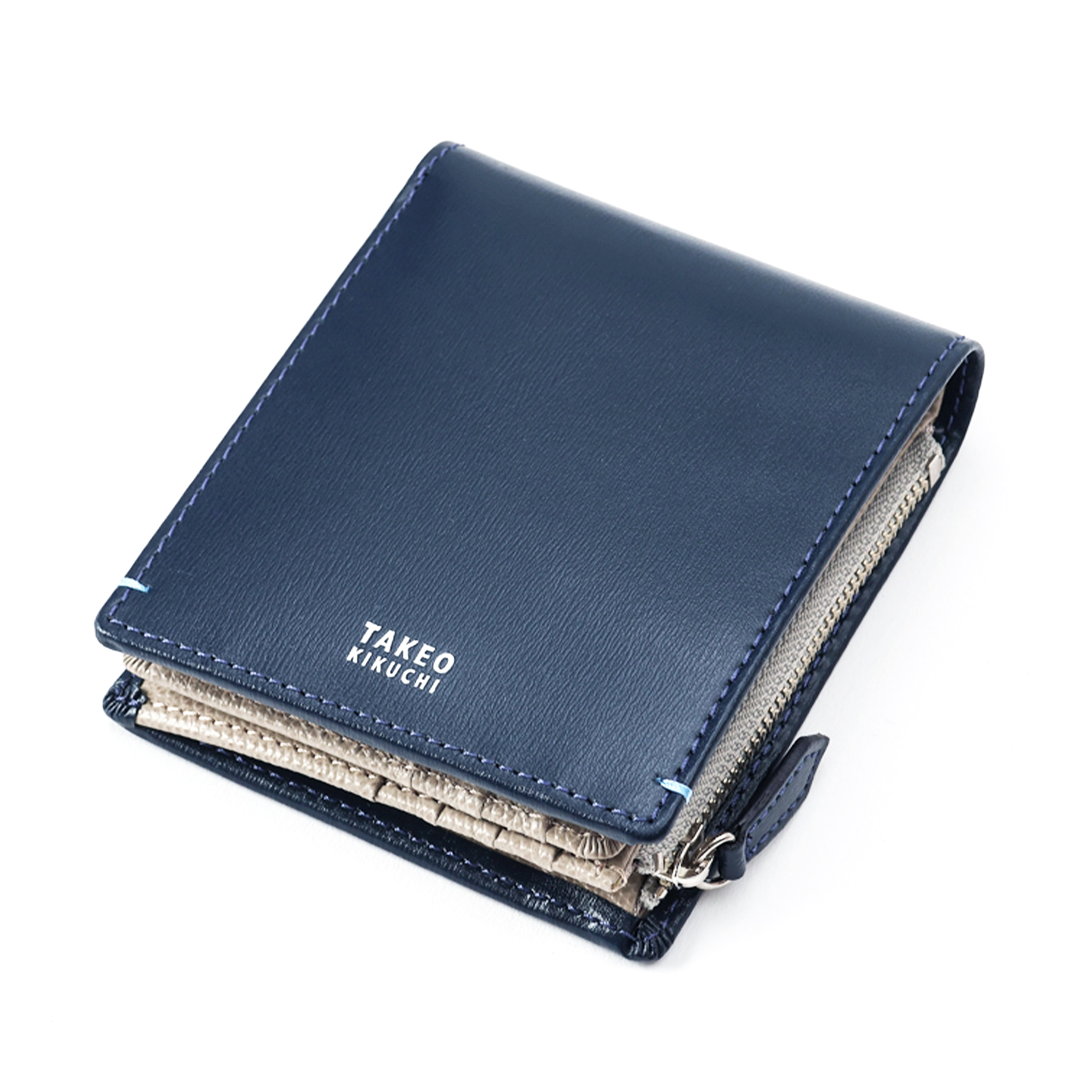【タケオキクチ】ヨーク 財布 二つ折り ベラ付きファスナー 小銭入れあり