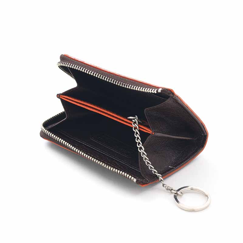 L字ファスナーの小銭入れは、口がおおきく開くので小銭がとりだしやすいのが特徴的です。